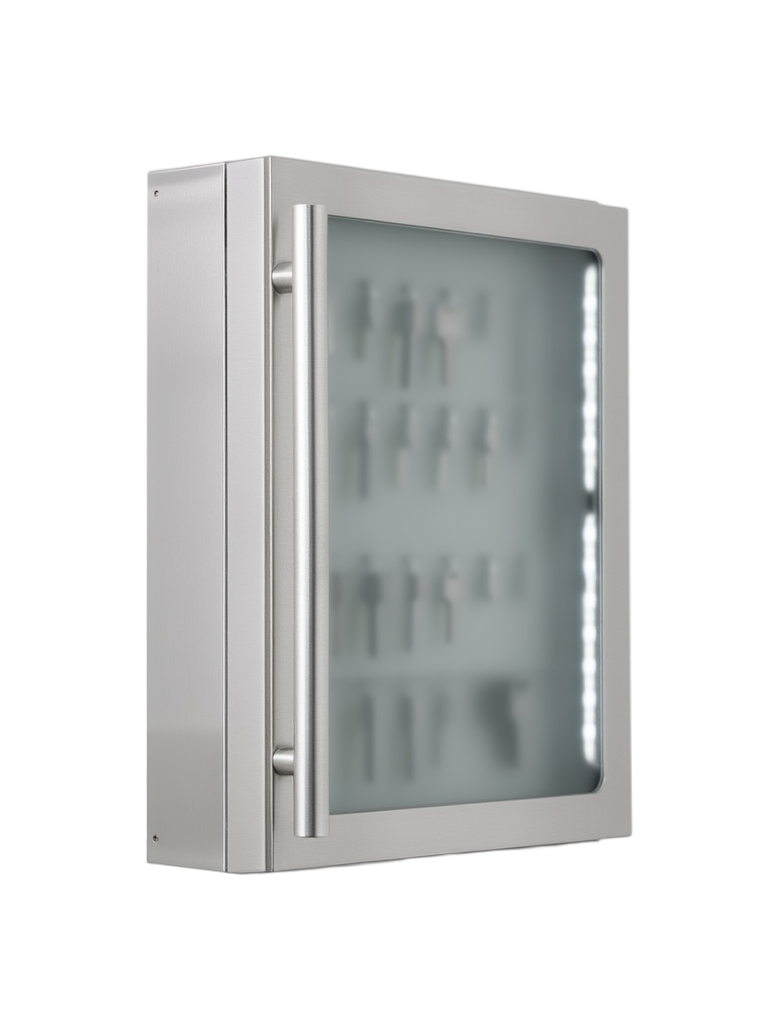 Der Schlüsselschrank Key Metall ist optisch schön und funktionell zugleich. Hinter der hochwertigen Glastüre, die mit Magnetverschluss schließt, sind 8 Haken für Ihre Schlüssel angebracht. Ein Stift mit magnetischem Stiftehalter und 4 Magnete sind als Zubehör dabei. So können Sie diese moderne Schlüsselaufbewahrung auch als Platz für Notizzettel, Bilder etc. nutzen und schlagen somit 2 Fliegen mit einer Klappe.