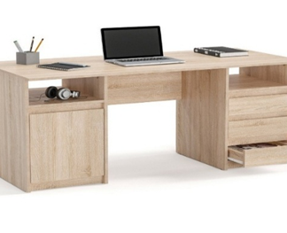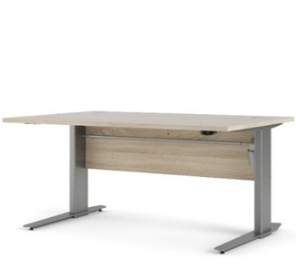 Moderner Büroschreibtisch mit stabiler Metallkonstruktion und Tischplatte in natürlicher Holzoptik. Er bietet eine großzügige Arbeitsfläche und passt dank seines schlichten, zeitlosen Designs ideal in Büro- und Homeoffice-Umgebungen.